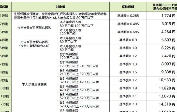 所得による保険料の算出も重要な要素だ。所得に応じて、保険料は以下のように計算される。