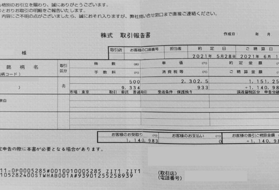 - 株式売却に関する領収書: 売却時の証拠となる書類です。