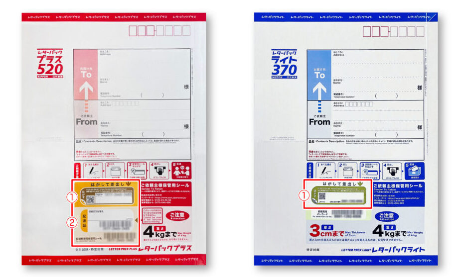 - レターパックプラス: 全国一律で520円の料金。対面での受け渡しがされ、最大4kgまでの荷物が送れます。