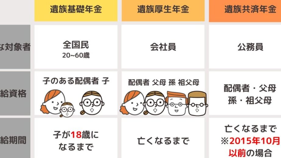 私たちが知るべき遺族年金の主な種類には以下が含まれます。