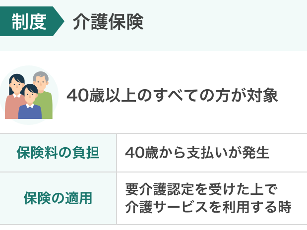 - 介護保険者:この制度は40歳以上のすべての人が対象となります。