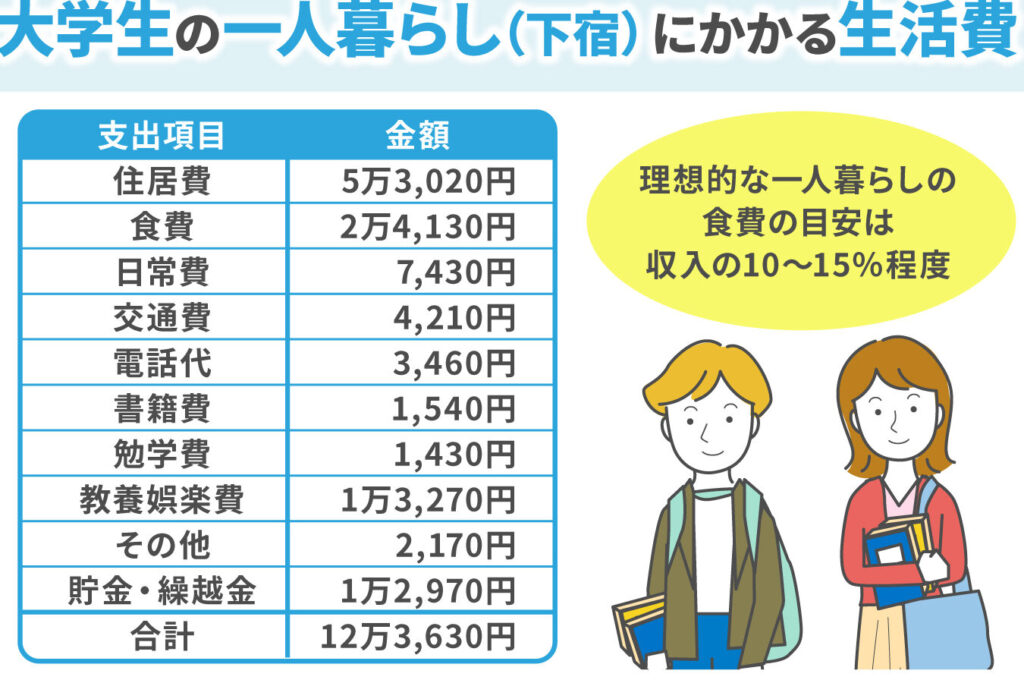 - 住居: 家賃は地域によって異なり、東京23区では東京都心部に比べて郊外の方が安いです。また、シェアハウスを選ぶことで、費用を抑えられます。