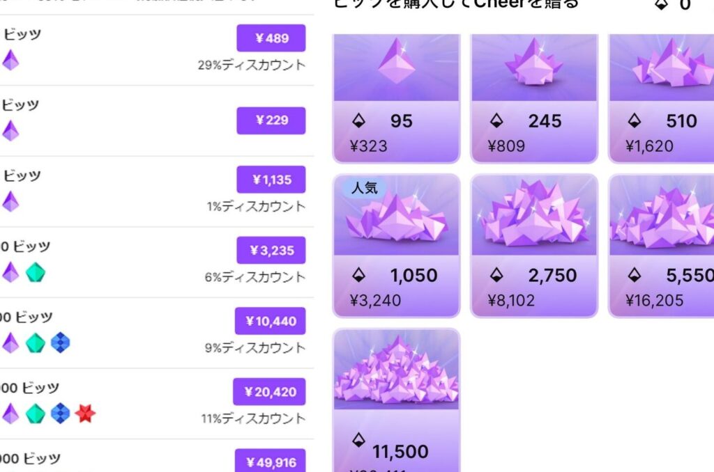 価格は変動することがありますが、上記のリストが基本的な目安です。ビッツは、多くの場合、視聴者がエモジやメッセージを通じてストリーマーをサポートするために使われます。この支援はストリーマーにとって非常に大きな励みになります。