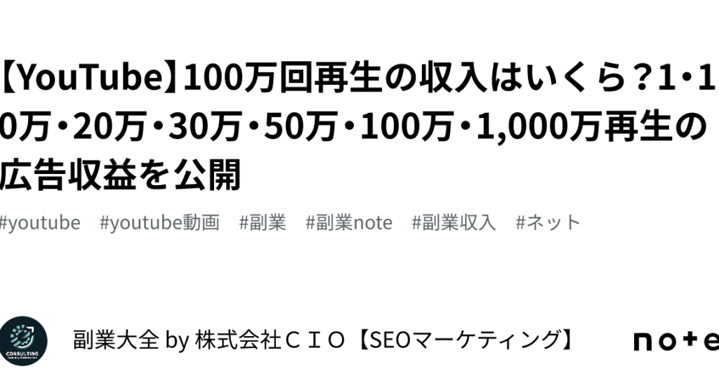 YouTube 100万回再生の収入の概要