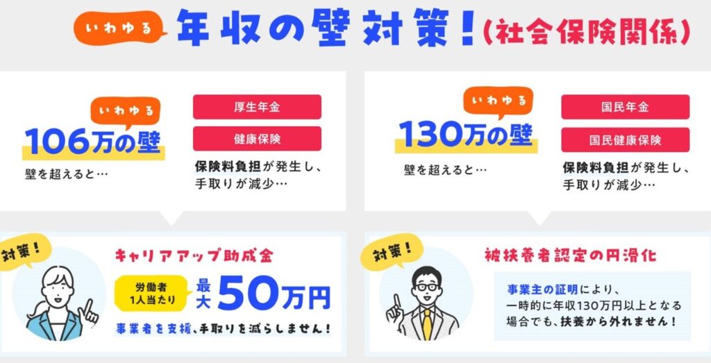 - 税制の見直し: 所得税や社会保険料の軽減を図ることで、106万の壁を越えた場合でも手取り収入をあまり減らさないようにする。