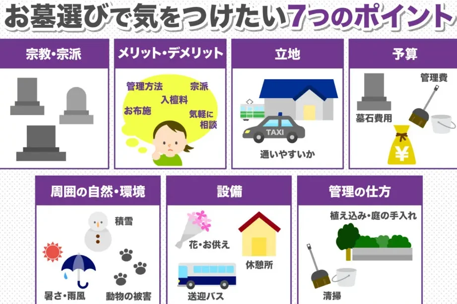 - 立地: 地元の墓地はアクセスしやすく、訪問しやすい。都市部や郊外の違いを考慮する。