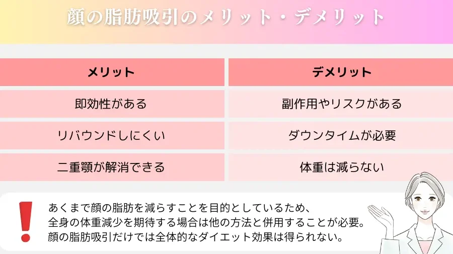 脂肪吸引には、体型改善の手段としてのメリットがある一方で、いくつかのデメリットも存在します。これから挙げるポイントに注意が必要です。
