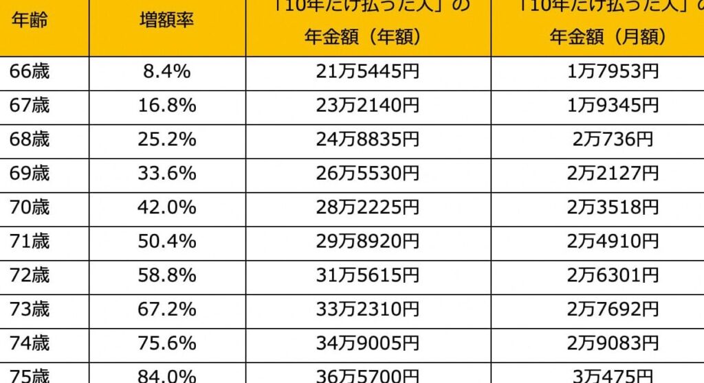 - 期間の延長: 支払いを長く続けることで、当初の基準に対して月額受給額が増加します。
