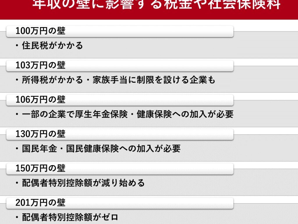 税制度も106万の壁の重要な側面です。年収がこの金額を超えると、次のように税金が発生します。
