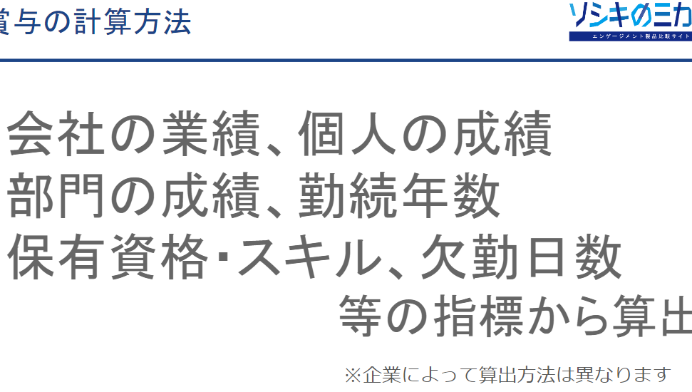 賞与は通常、年に1回または数回支給され、その金額は以下の要素に基づいて決まります。