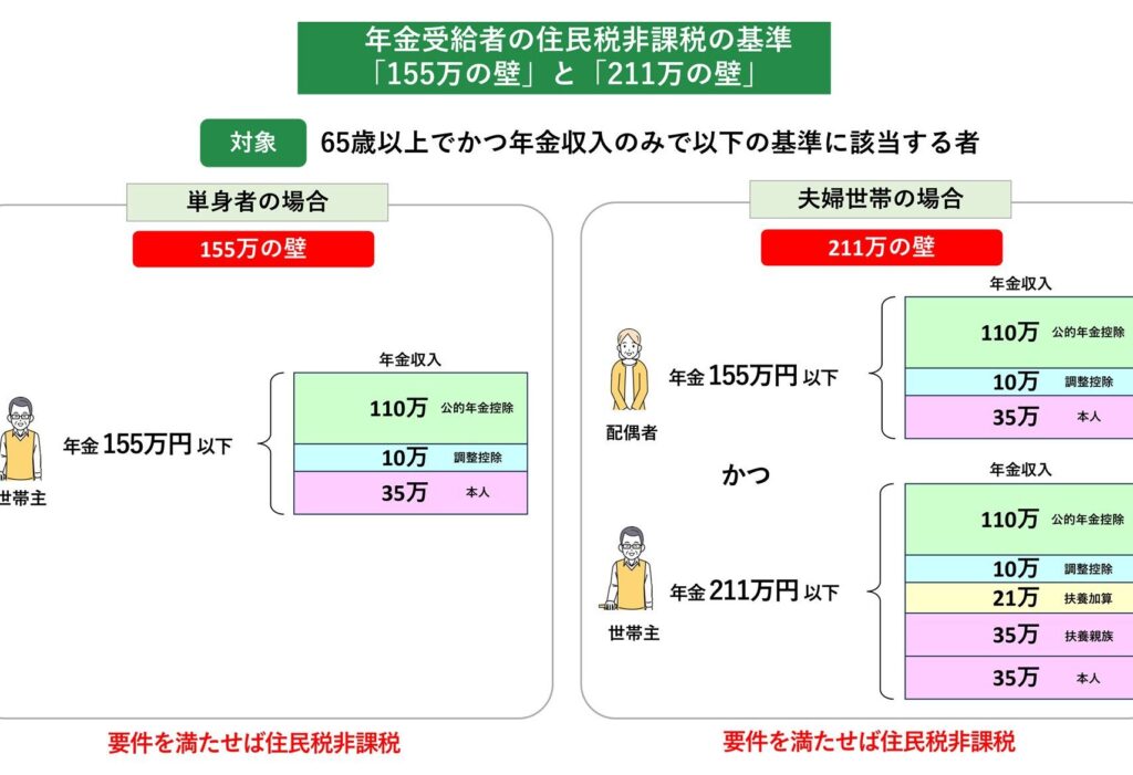 65歳以上の方には、特別な税制優遇措置が設けられています。この措置により、住民税が非課税になる条件がいくつかあります。