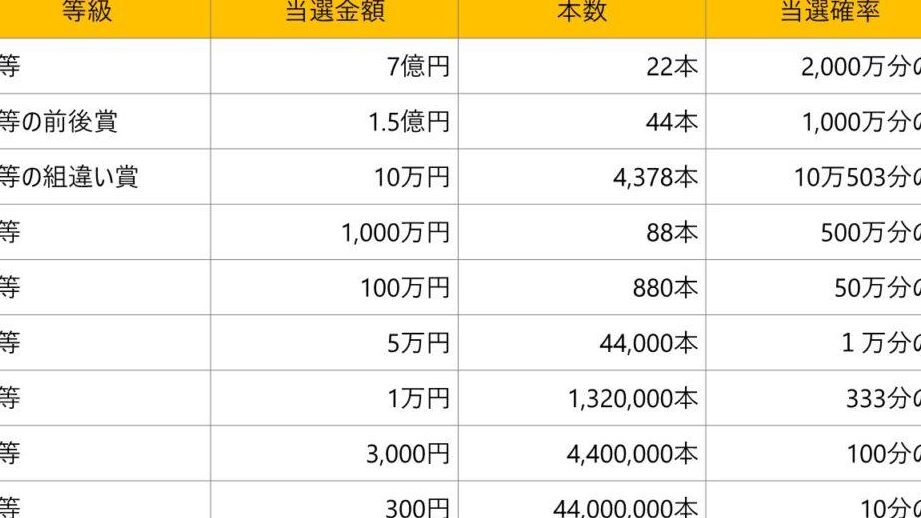 - ジャンボ宝くじ: 300円から1,000円