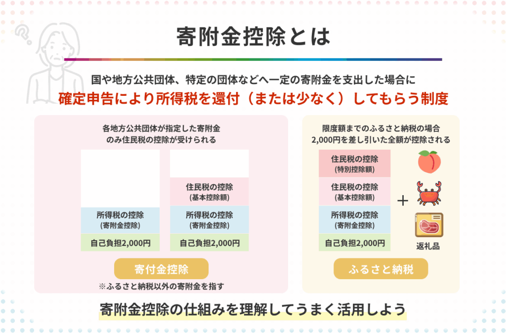 寄付金控除は、寄付を行った際に税金の減額が受けられる制度です。この制度を利用すると、寄付金の一部が税金から控除され、結果として還付される可能性があります。