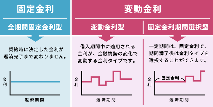- 固定金利: 返済期間中、金利が一定で変わりません。長期的な計画を立てるには安心感があります。