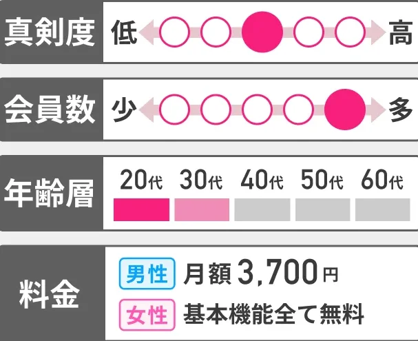 以上の機能により、多くの利用者と出会うチャンスがあります。ただし、メッセージ交換には制限があります。無料プラン利用者からは、メッセージを送ることができないため、出会いの確率が低下する可能性があります。