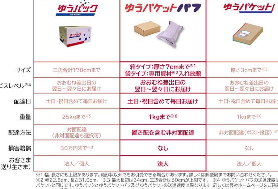 ゆうパケット サイズの概要