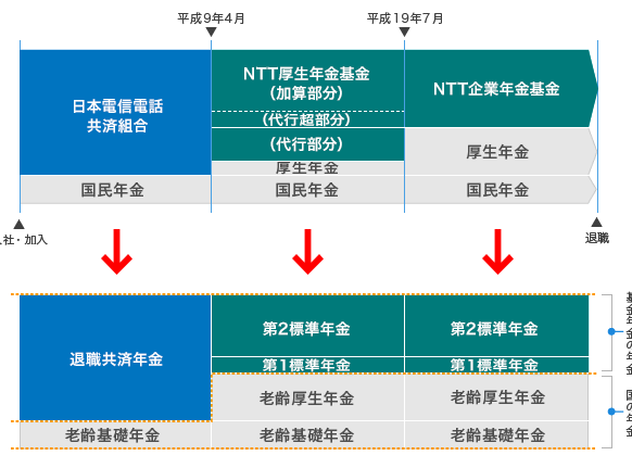 NTT企業年金基金は、従業員の退職後の生活資金を支えるために設立されました。主に、確定給付年金と確定拠出年金の2つのシステムで成り立っています。私たちの加入するこの基金は、雇用される期間中に積み立てた資金を基に、退職後に年金を受け取る仕組みです。