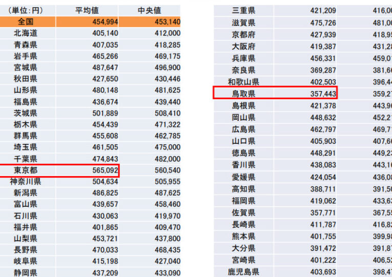 - 地域の生活費