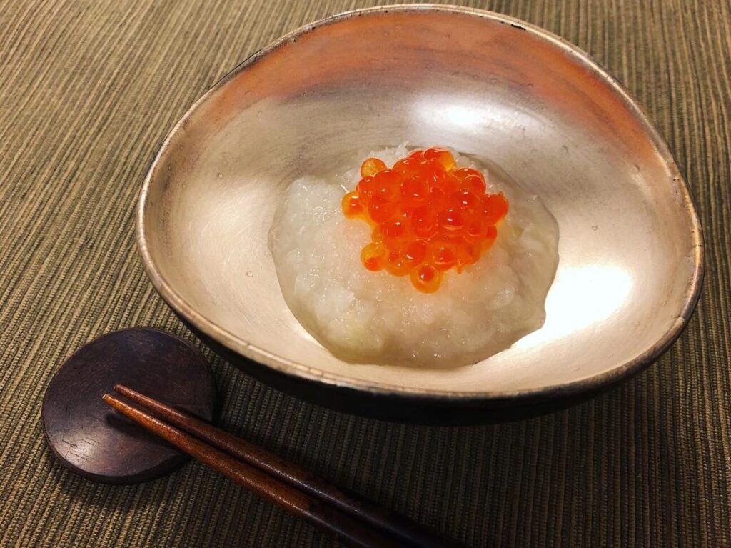 いくらの質感は、外側が柔らかく、内側は弾力があります。この独特な食感は、口の中でプチンと弾けて、風味が広がります。また、甘味と塩味のバランスが絶妙で、料理にさまざまな味わいを追加します。特に、白だしとの組み合わせでは、いくらの風味が引き立ちます。