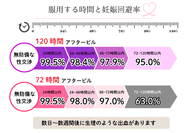 - レボノルゲストレル製剤: 服用後72時間以内に使用すると、妊娠のリスクを約89%減少させます。