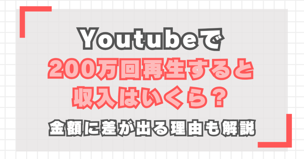 YouTubeで200万回再生が達成されると、予想される収入は約20万円から200万円程度です。収益にはさまざまな要因が関与します。具体的には、以下の要因が挙げられます。