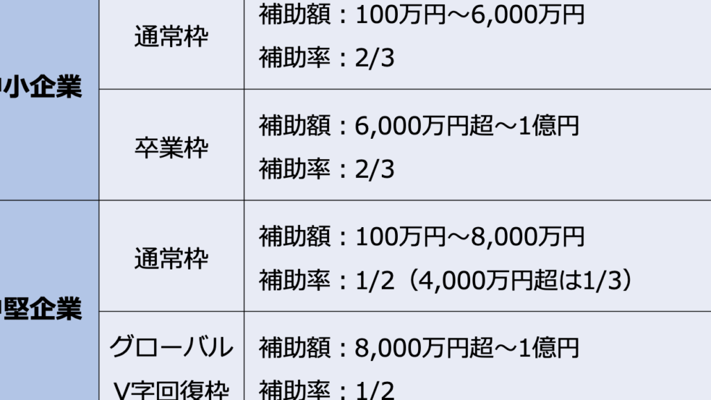 - 創業支援補助金: 中小企業向け、100万から300万円