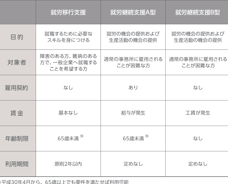 - 対象者: 障害者支援法に基づく障害を持つ方々が対象。