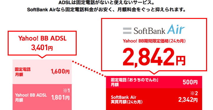 現在提供されている主要なADSLプロバイダーの価格は以下の通りです。
