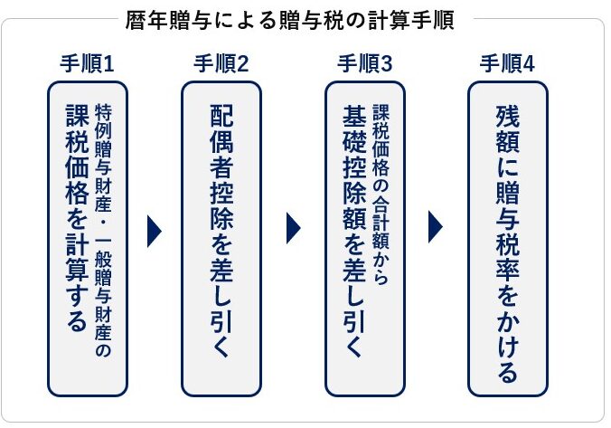 - 税額の計算: 残りの贈与額に基づいて、該当する税率を適用し、最終的な税額を計算する。
