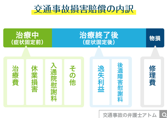 - 医療費の実費: 医療費は、事故により発生した実際の費用が支払われる。例えば、診療代や薬代、入院費用などが該当する。