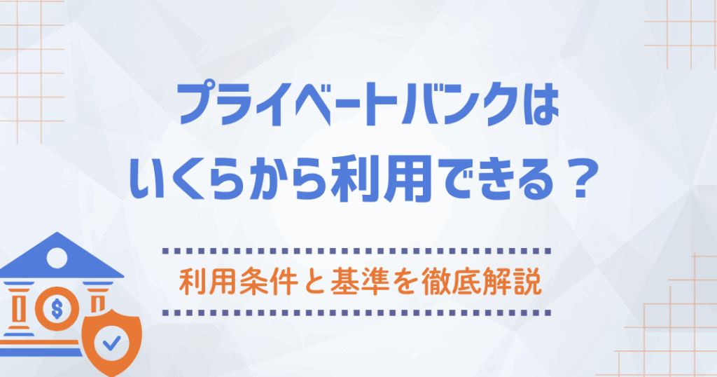 プライベートバンクには、資金の規模に応じた利用条件がある。一般的には、プライベートバンクのサービスを利用するためには、最低数千万円からの資産が必要だ。具体的な金額は、各バンクによって異なるため、私たちが考慮すべき点がいくつかある。