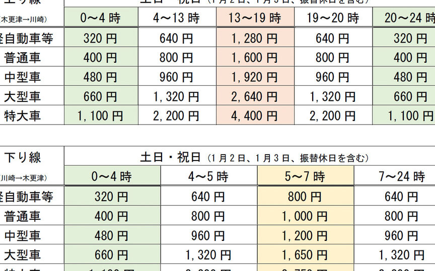 アクアラインの料金は、通行する時間帯によっても変動します。平日と休日では料金が異なり、特に以下のような違いがあります。
