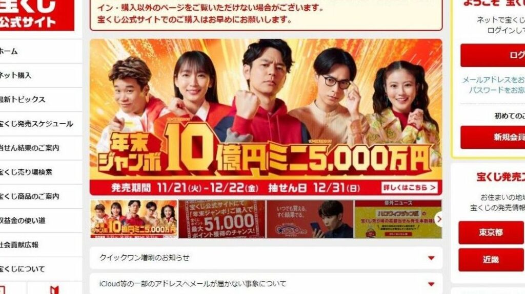 - ジャンボ宝くじ: 成年以上が購入でき、大きな賞金が魅力の宝くじです。年に数回販売されます。